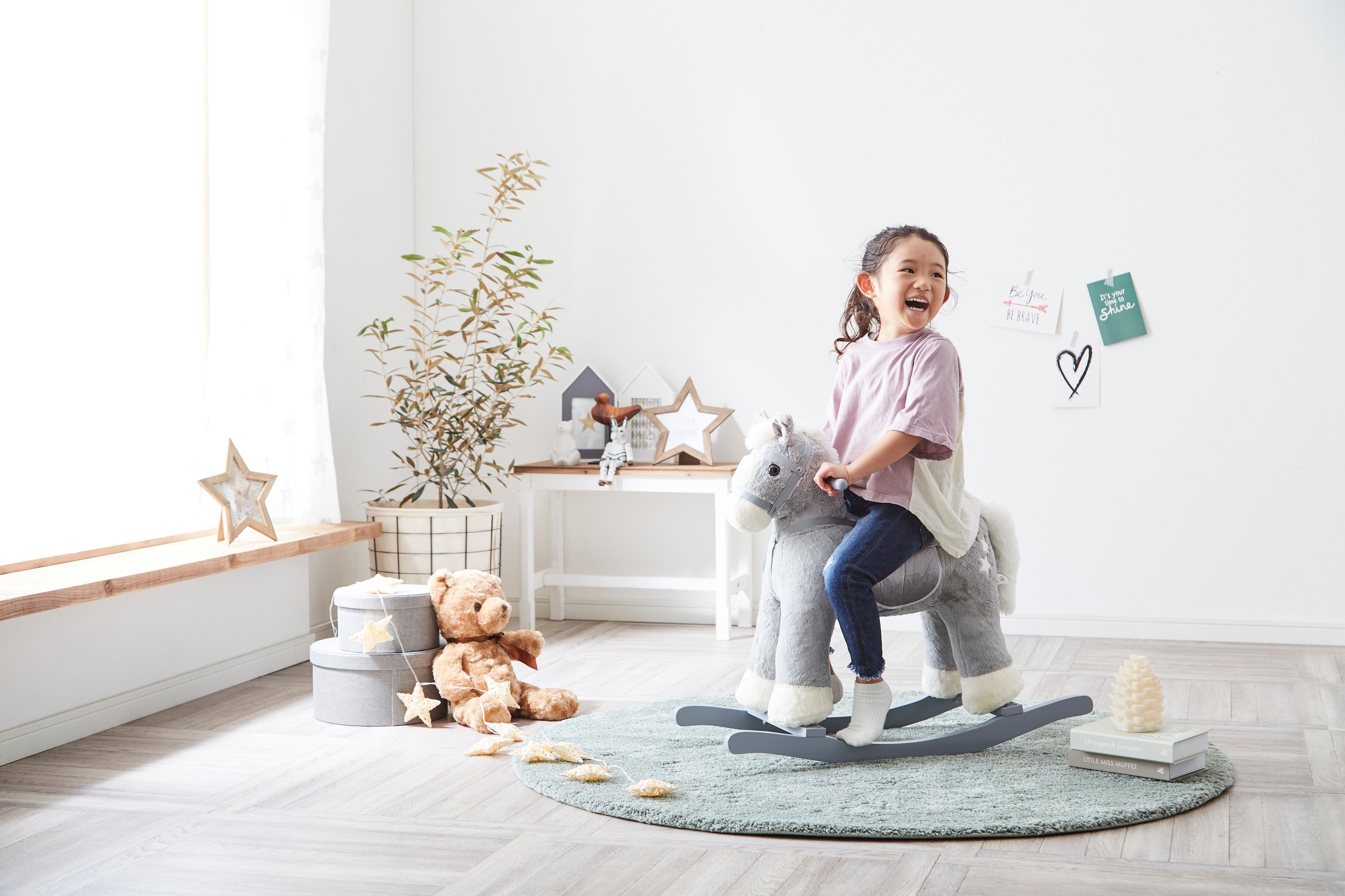 アニマルモチーフのハンドル付きロッキングチェア。 ゆらゆらとロッキングしながら遊べる、アニマルロッキングチェアです。 お子様がぎゅっと握れるハンドルが両サイドに付いています。 対象年齢:3~5才頃 CEマーク取得(ヨーロッパの商品安全基準)合格 耐荷重80㎏(JIS規格:椅子の座面の静的強度試験)合格